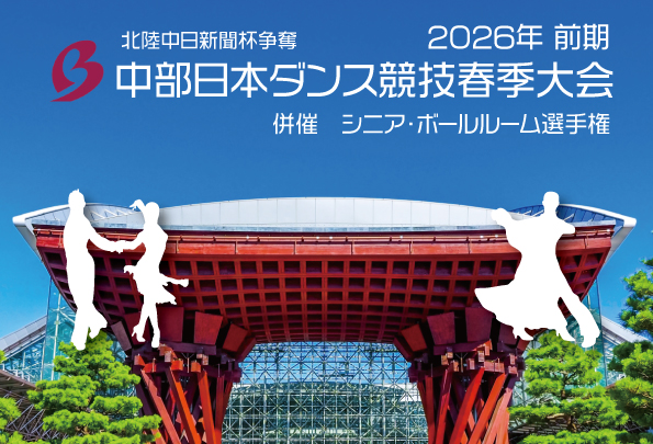 毎年年2回、4月と9月に行われております、中部日本ダンス競技会石川大会が、2026年4月12日(日)に石川県立音楽堂交流ホールにて行われます。